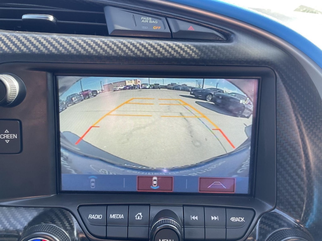 - The vehicle is equipped with a camera that displays an image of the area behind the vehicle on an interior display.