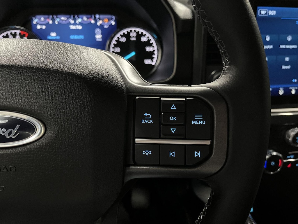 - Includes vehicle with standard equipment, SYNC 4 with enhanced conversational voice recognition, 12 in. LCD capacitive touchscreen, information on demand panel, 8 inch productivity screen in instrument cluster, SiriusXM with 360L, connected navigation, wireless Apple CarPlay, wireless Android Auto, cloud connected, AppLink, 911 Assist, 7 speakers, digital owners manual, dual-zone electronic automatic temperature control, 10-way power adjustable front seats with power lumbar adjustment, heated front seats, leather-wrapped steering wheel, rear under-seat storage, 110V/400W outlet in the instrument panel and pickup bed, auto-dimming rearview mirror, manual-folding power heated side view mirrors with LED integrated turn signals and security approach lamps, LED reflector headlamps, LED cornering fog lamps, Intelligent Access with push button start, remote engine start, remote tailgate release, SecuriCode keyless entry keypad, Class IV trailer hitch, 4-pin and 7-pin wiring, and smart trailer tow connector.