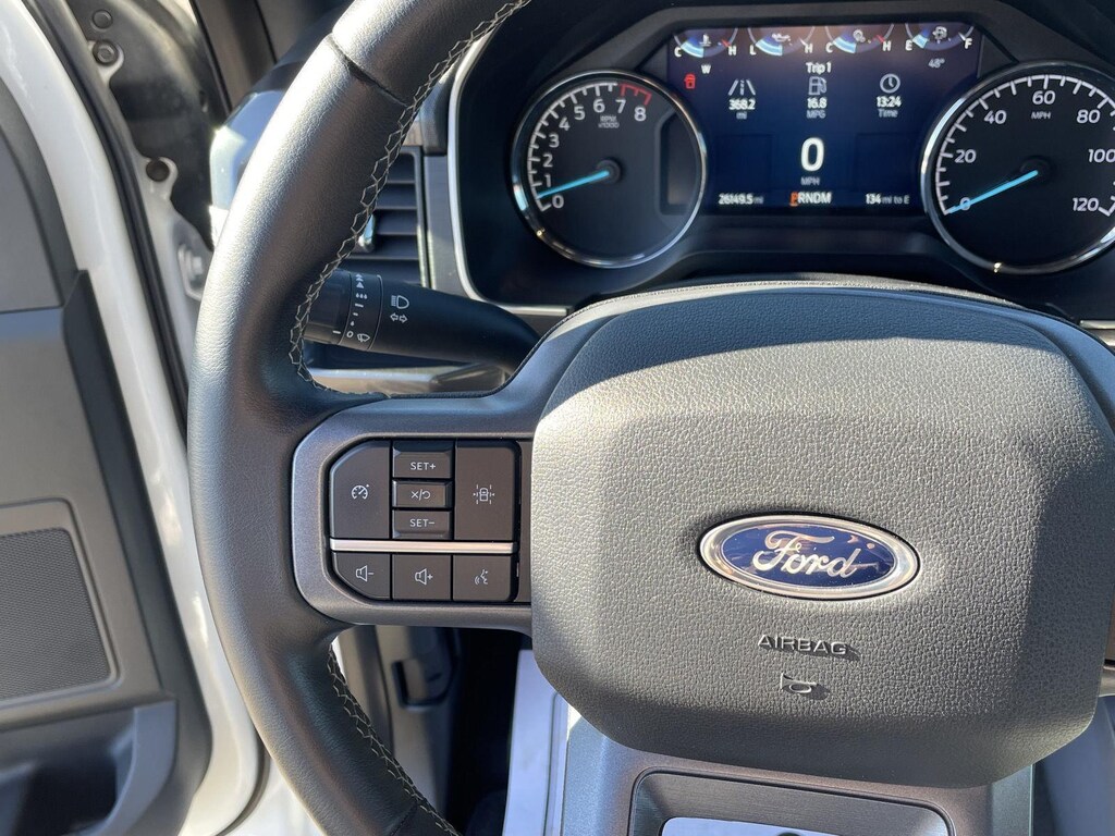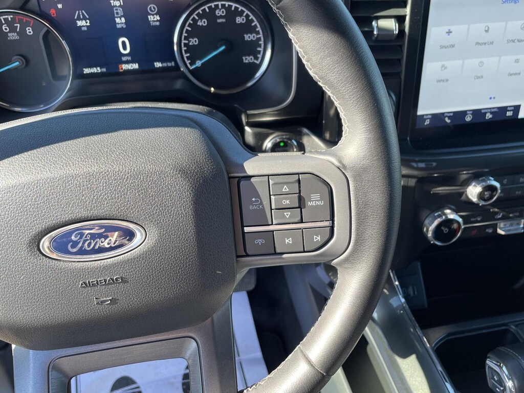 - Includes vehicle with standard equipment, SYNC 4 with enhanced conversational voice recognition, 12 in. LCD capacitive touchscreen, information on demand panel, 8 inch productivity screen in instrument cluster, SiriusXM with 360L, connected navigation, wireless Apple CarPlay, wireless Android Auto, cloud connected, AppLink, 911 Assist, 7 speakers, digital owners manual, dual-zone electronic automatic temperature control, 10-way power adjustable front seats with power lumbar adjustment, heated front seats, leather-wrapped steering wheel, rear under-seat storage, 110V/400W outlet in the instrument panel and pickup bed, auto-dimming rearview mirror, manual-folding power heated side view mirrors with LED integrated turn signals and security approach lamps, LED reflector headlamps, LED cornering fog lamps, Intelligent Access with push button start, remote engine start, remote tailgate release, SecuriCode keyless entry keypad, Class IV trailer hitch, 4-pin and 7-pin wiring, and smart trailer tow connector.