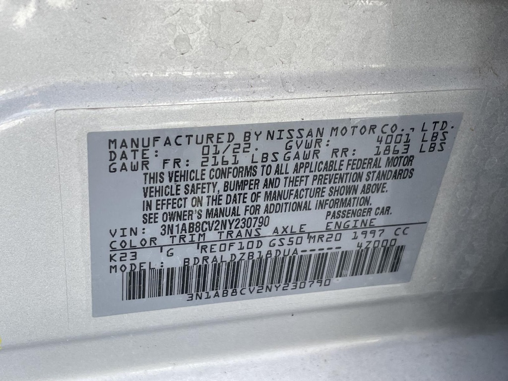 BRILLIANT SILVER METALLIC, BLACK, PREMIUM CLOTH SEAT TRIM, [C03] 50 STATE EMISSIONS, [B92] BODY COLORED SPLASH GUARDS (4-PIECE), [B93] CLEAR REAR BUMPER PROTECTOR, [L92] CARPETED FLOOR MATS W/TRUNK MAT, [N94] DOOR SILL PLATES
